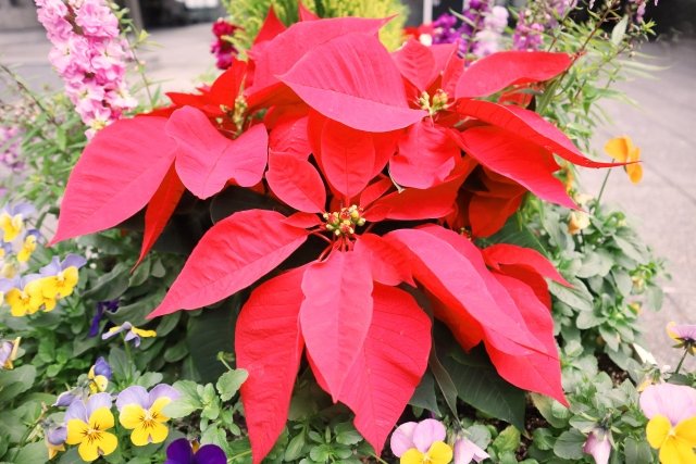 ポインセチアは、鮮やかな赤色の苞葉と冬の代表的な花として広く認識されています。この植物はメキシコが原産で、クリスマスの象徴として世界中で親しまれています。実際の花は、赤い苞葉に囲まれた中央の小さな黄色い部分です。