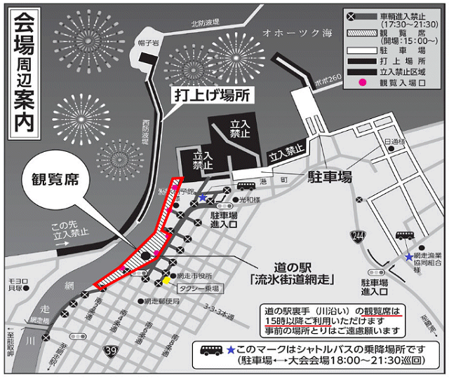 網走オホーツク夏まつり花火大会会場へのアクセス