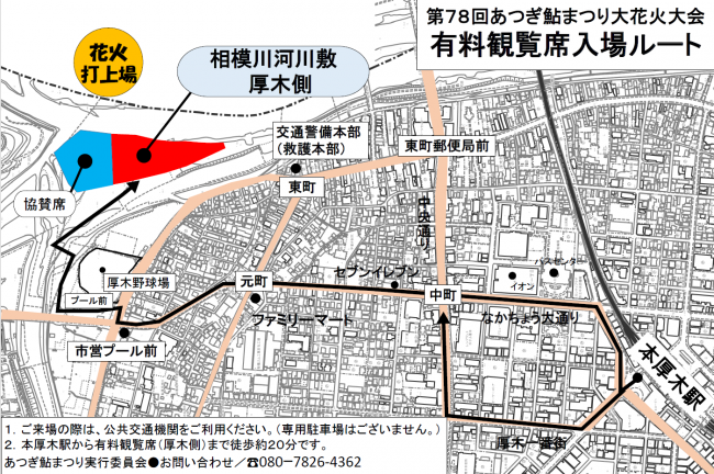 あつぎ鮎祭り花火大会会場案内図(厚木側)