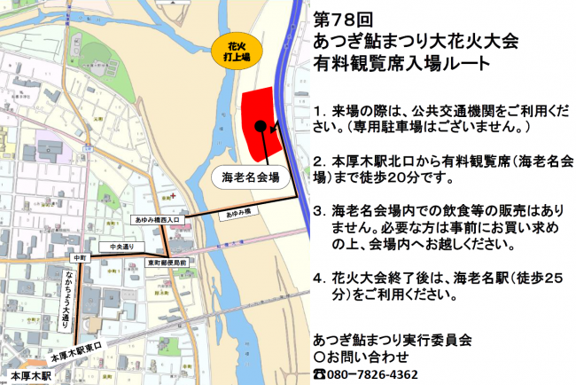 あつぎ鮎まつり花火大会会場へのアクセスについてご案内いたします。