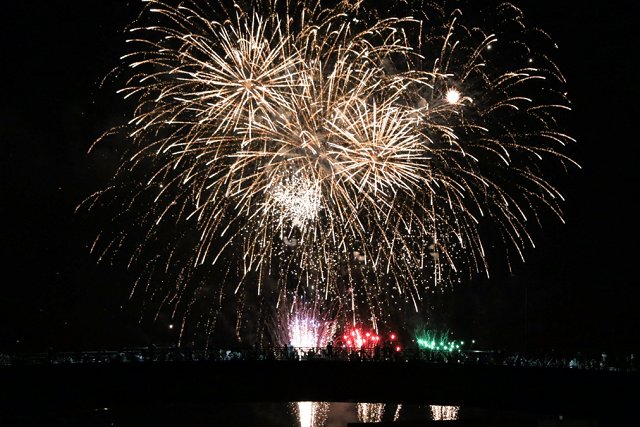 見どころは、夜空に咲き誇る大輪の花火や華やかなスターマインで、圧巻の光景が広がります。さらに会場には多くの屋台が並び、飲食を楽しみながら花火を観賞できます。加えてステージイベントも行われ、祭り全体を盛り上げる演出が用意されている点も魅力です。
