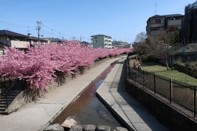 地元の住民によって主に植えられたこれらの河津桜は、2月中旬からが見頃です。淀水路の遊歩道を歩きながら、ゆったりと桜を楽しむことができます。満開の時には、水面に散る桜の花びらが風情を醸し出し、花見の醍醐味を提供してくれます。