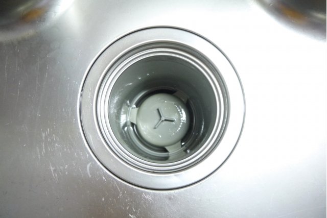 (1) 排水口のゴミ受け皿を外し、中のゴミを取り除きます。