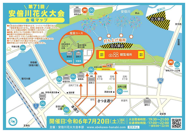 安倍川花火大会交通規制図(画像引用元:安倍川花火大会公式サイト)
