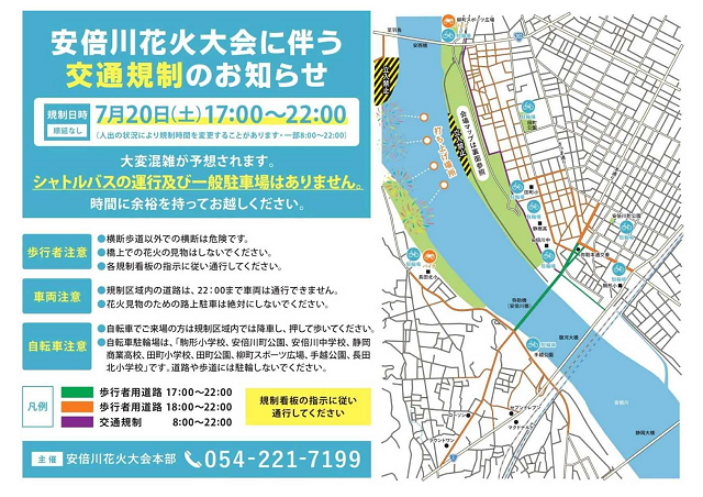 問い合わせ:054-221-7199 安倍川花火大会本部