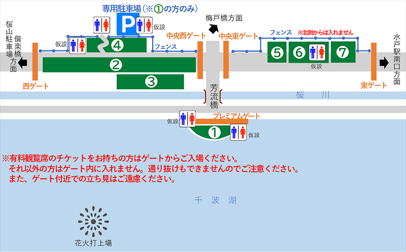水戸黄門まつり花火大会 有料観覧席会場図(画像引用元:水戸黄門まつり花火大会公式サイト)