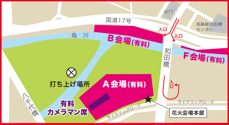 高崎花火大会無料観覧エリア会場案内図(画像引用元:高崎花火大会公式サイト)