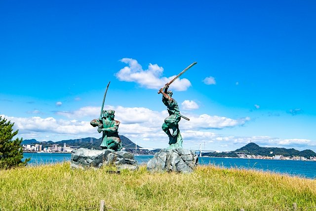関門海峡花火大会の下関会場でおすすめの穴場スポット巌流島は、海峡の中央に浮かぶ歴史ある小島です。唐戸桟橋や門司港レトロから連絡船で約10分とアクセスも良好で、宮本武蔵と佐々木小次郎の決闘の地として知られています。