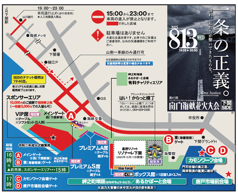関門海峡花火大会(下関)の交通規制について