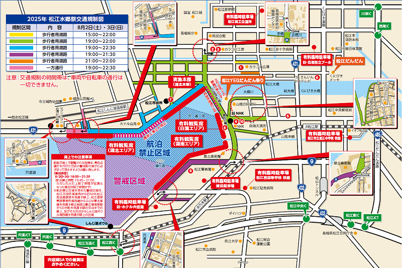 松江水上祭湖上花火大会の交通規制図