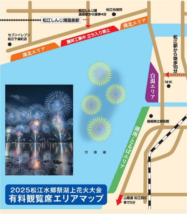 松江水上祭湖上花火大会2025の会場へのアクセスについてご案内致します。