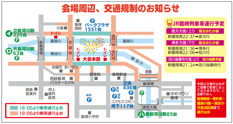 飯塚納涼花火大会会場周辺、交通規制のお知らせ