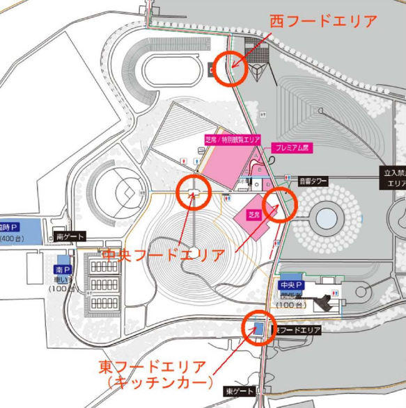 - 芝席赤ブロック自由席(マイカーパック3名)