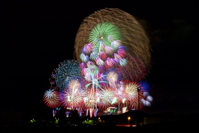 札幌市のモエレ沼公園では、大規模な北海道芸術花火が開催されます。イサム・ノグチが手掛けたこの公園は、自然と芸術が調和した独自の景観を持ち、広大な敷地や「大地の彫刻」と称される起伏を活かした立体的な演出が特徴です。国内屈指の花火師による玉を組み合わせたノンストップの芸術花火が展開され、他では味わえない迫力を体感できます。見どころは、音楽と花火が完全にシンクロするダイナミックなショーで、名曲に合わせて繰り広げられる幻想的な3D演出も高く評価されています。