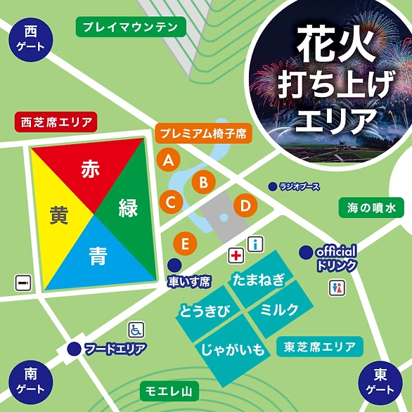 モエレ沼北海道芸術花火会場案内図(画像引用元:北海道芸術花火2025公式サイト)