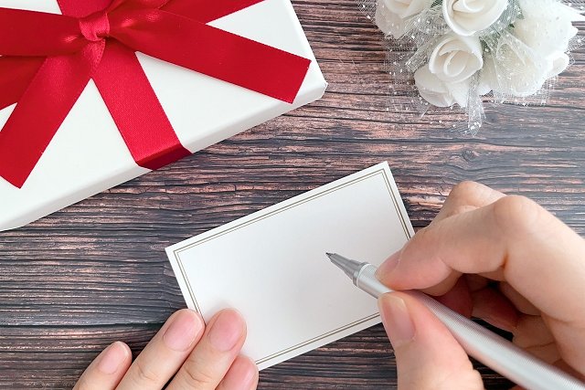プレゼントと一緒に渡す場合は、「なぜこの品を選んだのか」という理由をひと言添えてみるのもおすすめです。「あなたが◯◯だから選んだ」という思いやりの言葉を添えれば、きっと気持ちも伝わるはず。