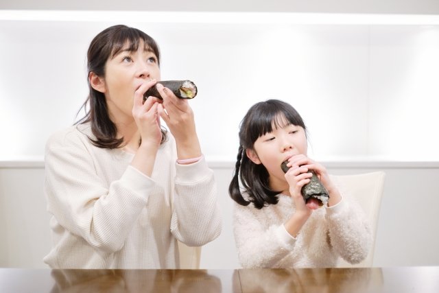 節分に食べる恵方巻は、その年の恵方、つまり歳徳神がいらっしゃる方向を向いて食べると縁起が良いとされています。