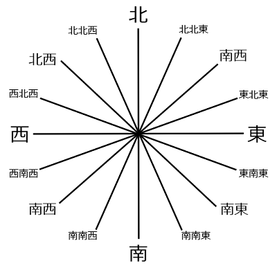 16方位で見ると、南南東と南のちょうど中間あたりに位置し、南南東よりもやや南寄りの方向を指しています。