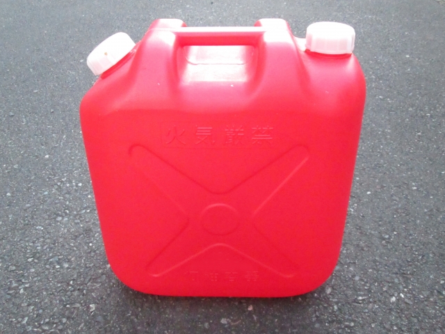 それは、灯油を入れるためのポリタンクです。ドラッグストアやホームセンターなどで手軽に購入できます。