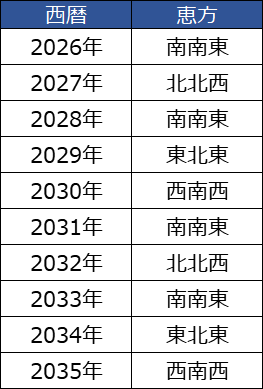 恵方は年によって方角が変わります。