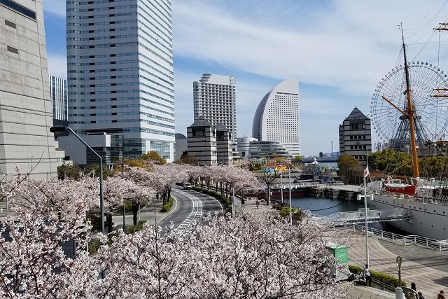さらに、この地区には「さくら通り」と呼ばれる、JR桜木町駅から横浜ランドマークタワー、パシフィコ横浜に至る約500メートルの桜並木があり、3月下旬から4月上旬にかけてが桜の最も美しい見ごろを迎えます。この時期には、近代的なみなとみらいの景観と桜の並木道を一緒に楽しむことができます。